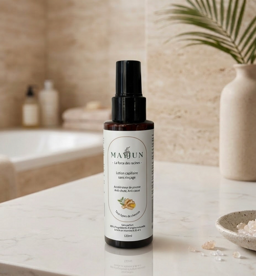 Une lotion sans rinçage, légère et non grasse, formulée à base de plantes et de gingembre pour stimuler le cuir chevelu, renforcer la fibre capillaire et accompagner la pousse naturelle des cheveux.